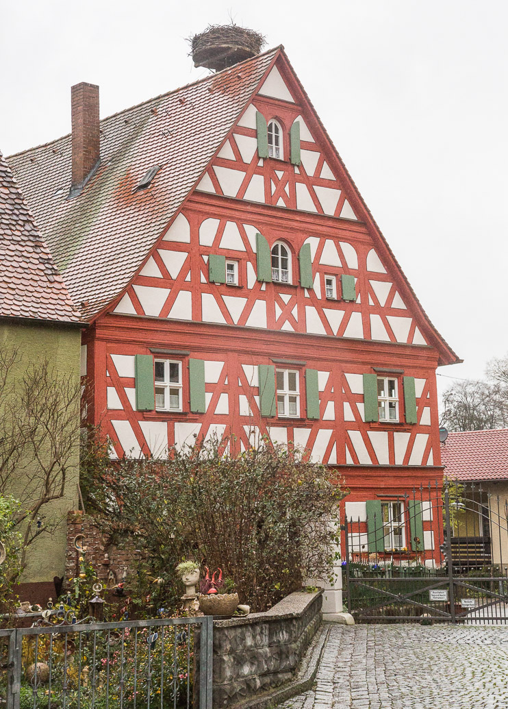 ....ein wunderschön renoviertes Fachwerkhaus mit Storchennest. Vier Jungstörche wurden wieder flügge. Alle Jahre ein Ereignis.