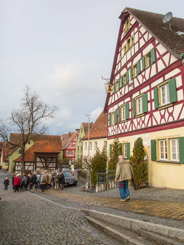 Seniorenfahrt am 19. November 2015. Zunächst nach Lonnerstadt, ein Markt im mittelfränkischen Landkreis Erlangen-Höchstadt. Nach der Stadtführung mit der Gästeführerin Frau Marga Lunz, war Einkaufen bei Elsbeth Müller, Vertriebs KG. für Nahrungs- und Genußmittel vorgesehen. Schließlich zur Einkehr in Sterpersdorf, im "Gasthaus Lauberberg" bei der Antoniuskapelle. Nicht nur die heimischen Aischgründer Karpfen aus eigener Zucht, auch andere Köstlichkeiten standen auf der Speisekarte...