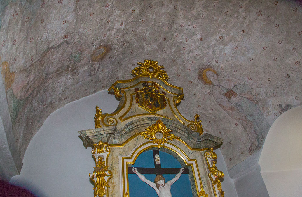 Der Chorturm mit Deckenfresken der 4 Evangelisten, stammt vermutlich aus der Spätgotik,