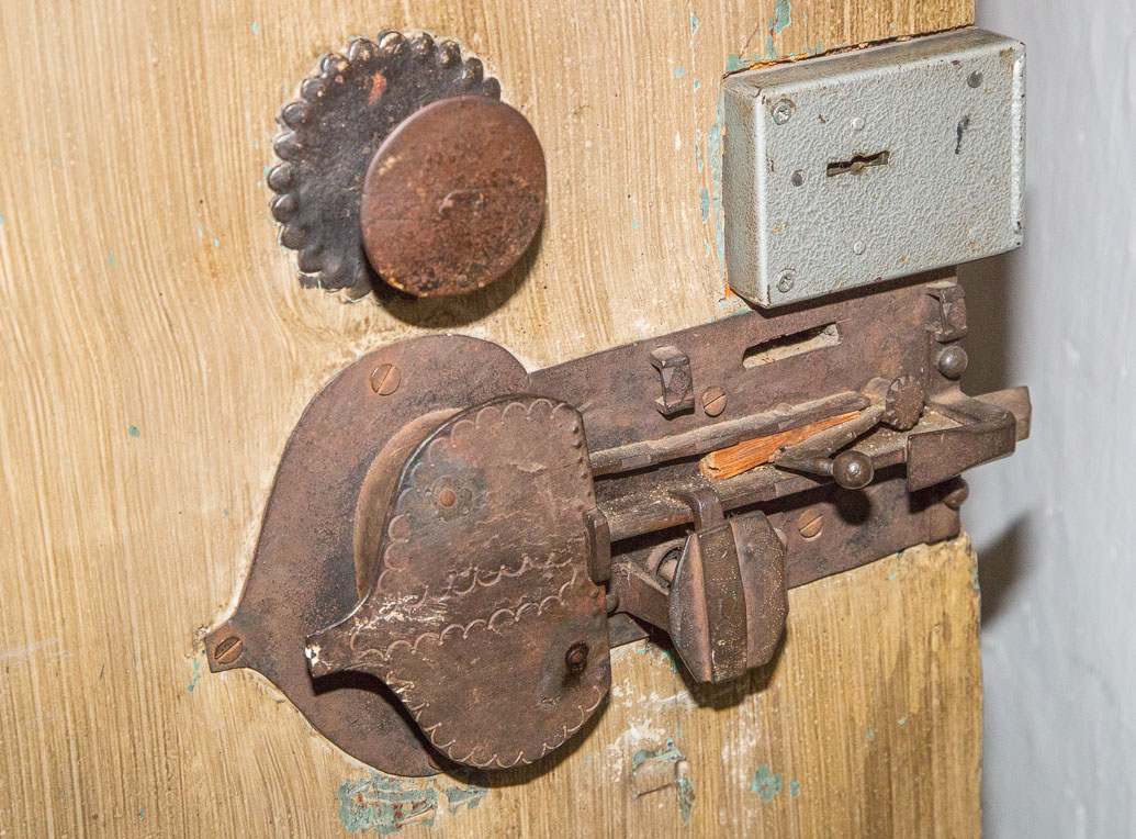 ....an der Tür zur Orgelempore ein geschmiedetes Schloß. Leider nicht mehr in Betrieb, wurde durch ein billiges Kastenschloß ersetzt....