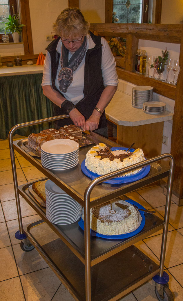 Adelheid Schor mit dem Kuchen bzw. Tortenwagen....
